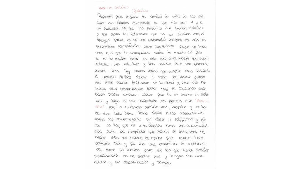 So if you decide to say it is just a disease that you know how to manage, it will be fine and that way you will live like a normal person. But there are certain rules to comply with, such as not consuming sugar or things with sugar because that can cause problems in your health, and I think you do not want those consequences. But there are special occasions where you can have sugar but not in excess or too often and after that compensate for it with exercise, otherwise you will have “high blood glucose”. But if you decide to feel bad and ignore your diet, you will have to abide by the consequences, because the consequences can be mild or dangerous and that is why you should not see diabetes as a disease, but as a companion that you must manage well sometimes. And that is why it is a companion in our life. Well, I write so that those who have recently been diagnosed with diabetes do not feel bad and have a normal life without discrimination and bullying.