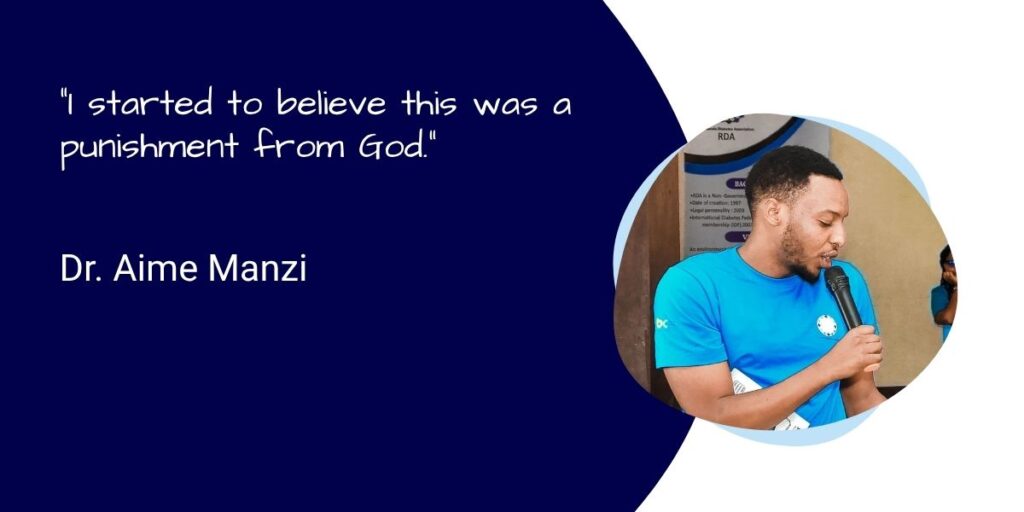 Aime’s parents were upset to learn that their son would always have diabetes. The expense and difficulty of providing separate, appropriate meals disturbed them, and they assumed he’d contracted the disease by eating too much sugar – “If you eat too much sugar, you’re going to be like Manzi,” Aime recalled other parents telling their kids.